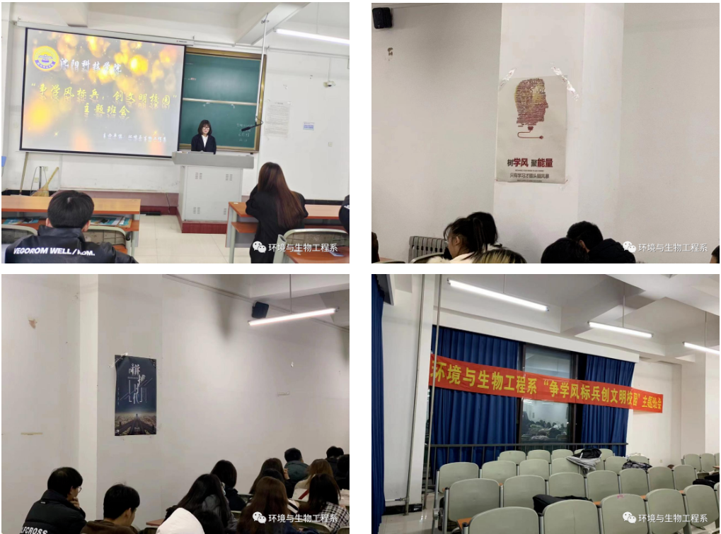 为了积极响应学校“争当学风建设标兵创建文明和谐校园”的号召,在班级范围内开展班会,树立勤奋、严谨、求实、进取的良好学风,引导学生端正学习态度,明确学习目的,掌握学习方法,增强学习纪律,提高学习质量,营造良好的学习氛围,同时提高班级凝聚力。沈阳科技学院环境与生物工程系学生会于2022年11月15日在第一教学楼202教室举行了“争学风标兵,创文明和谐校园”主题班会活动,由环境与生物工程系全体成员参与。