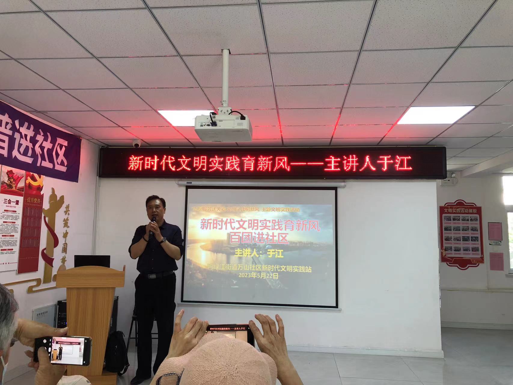 2023年5月23日,沈阳科技学院环境与生物工程系志愿者学生干部在鸭绿江街道万山社区新时代文明实践站参加了一场主题为“志愿服务送关爱 文明时间树新风”新时代文明实践育新风百团进社区的文明实践活动。活动由FM104.5沈阳新闻广播《市民您早》节目主播于江老师作为主讲人,旨在通过志愿服务的形式,传递关爱、文明和环保的理念,提高社区居民的生活质量。
