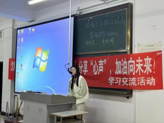 为了培养优良的学风,营造有利于大学生社会化的精神环境。环境与生物工程系于2023年10月29日在第一教学楼202教室开展学风建设活动。本次活动邀请有辅导员李倩老师,程雅萍、乔蕾和蔚欣瑶三位学姐。由三位学姐为我们分享学习经验,为学风建设进行发言。