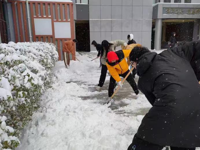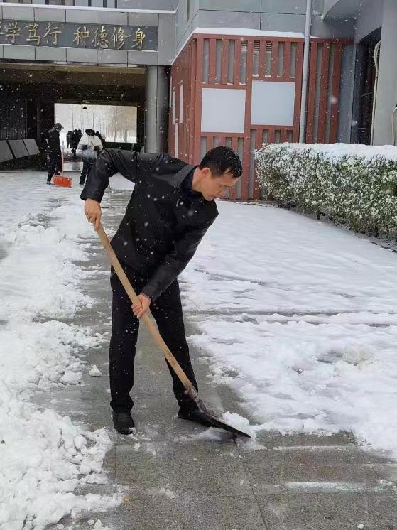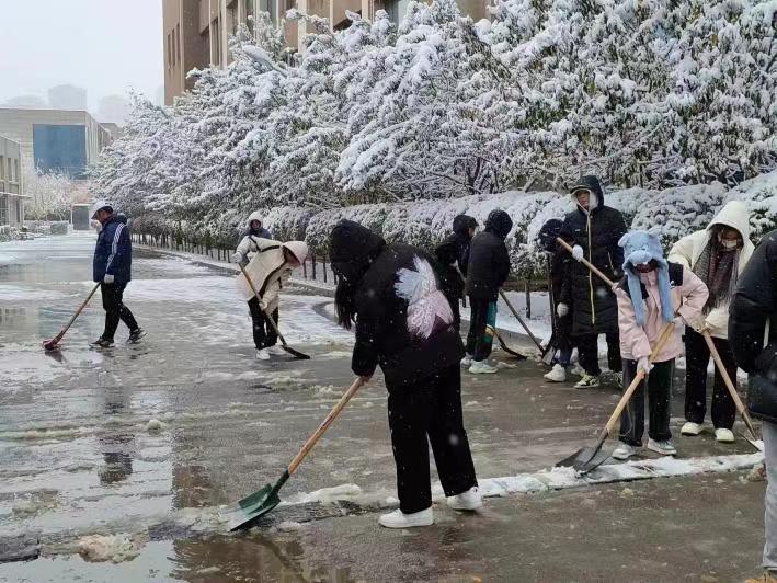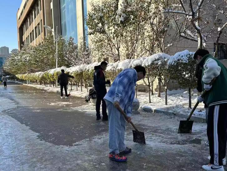 为确保全校师生的安全,防范冬天下雪、冰冻引起的事故发生,确保我校防冻防雪工作做到快速、高效、合理有序的应对,确保教育工作的顺利开展,环境与生物工程系导员赵朋亮老师及23级学生参校园扫雪活动。