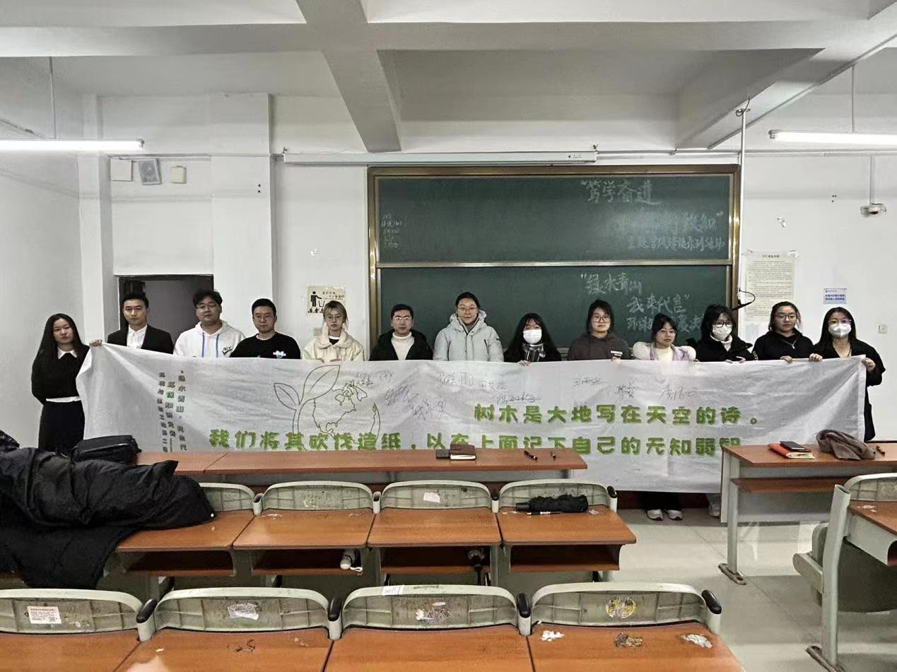 本系辅导员赵朋亮老师李倩老师和田艾迪老师、王雨生老师、胡向东老师进行签字,大家在本次活动主题的条幅上也进行签字,此次签字更激发环生青年环保意识,展现当代青年环保担当的决心,激发自己并影响和带动更多的人参与到环保事业中来,壮大中国环保工作力量。