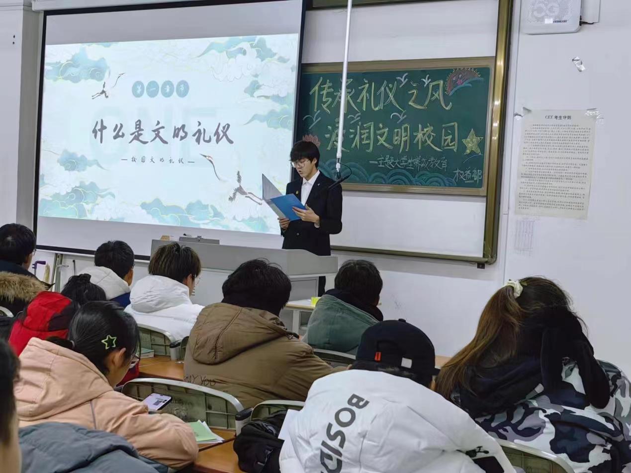 为营造良好的校园氛围,规范同学的校园文明行为,我系于11月27日晚18:00举行“传承礼仪之风,浸润文化校园”—大学生养成教育会。“人生无礼则不生”文明是素养,礼仪是人际关系和谐的基础,中国是一个有着“五千年文明礼仪的大国,素来有着“礼仪之邦”的美誉。对于当代大学生来说,礼仪是我们生活中不可缺少的重要组成部分,懂礼仪,懂文明,知礼仪需要依靠我们每一个人时刻牢记严格要求文明礼仪隐藏在每一个“您”“请”“谢谢”之中隐藏在每一次微笑握手点头之内,在校园内我们更要规范自己的行为,为创造文明的校园而奋斗。在校园当中我们也经常见到很多不文明的行为,我们应该规范自己,告诫他人,为创造美丽校园而奋斗。本次大会由高喆为同学们进行演讲,分为四个部分,并且让同学进行朗读,让同学们认识到文明的重要性。