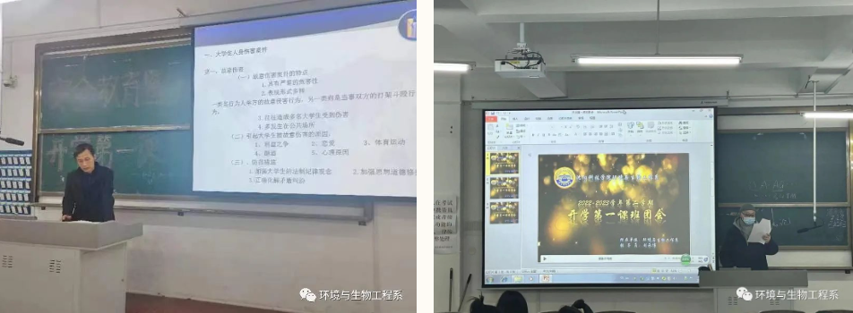 为认真贯彻党的教育方针,全面落实立德树人根本任务,引导青年学子在新学期、新征程上展现新气象、新作为,根据教育部和我校文件要求,环境与生物工程系在2023年春季新学期开学之际,由学工主任赵朋亮老师和辅导员刘承博老师分别组织各级学生开展“开学第一课”开学第一次主题班团会,用满满的仪式感迎接新学期的到来,以良好的心态和积极向上的精神面貌,带领学生投入新学期的学习和生活。