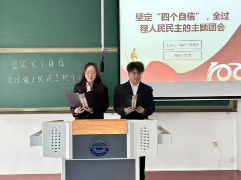 为让环生青年坚定四个自信并弘扬雷锋精神环境与生物工程系于二教举办主题班会。