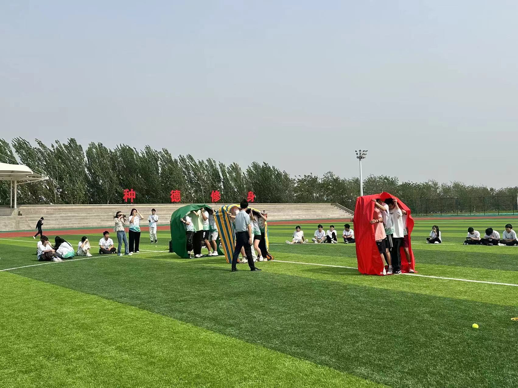 进行多项趣味活动,比如真人版贪吃蛇、多人击鼓颠球、无敌风火轮和双人夹球接力跑等等。大家在趣味活动中强健身心,释放压力,增进友谊,享受乐趣。在团队活动中学生需要团队协作手脚配合,每一次颠球的成功都能听到团队开心的欢呼声。每一次组队冲线的喜悦都洋溢着青春的朝气蓬勃,每一次的呐喊助威和激励的掌声,都令人感同身受。
