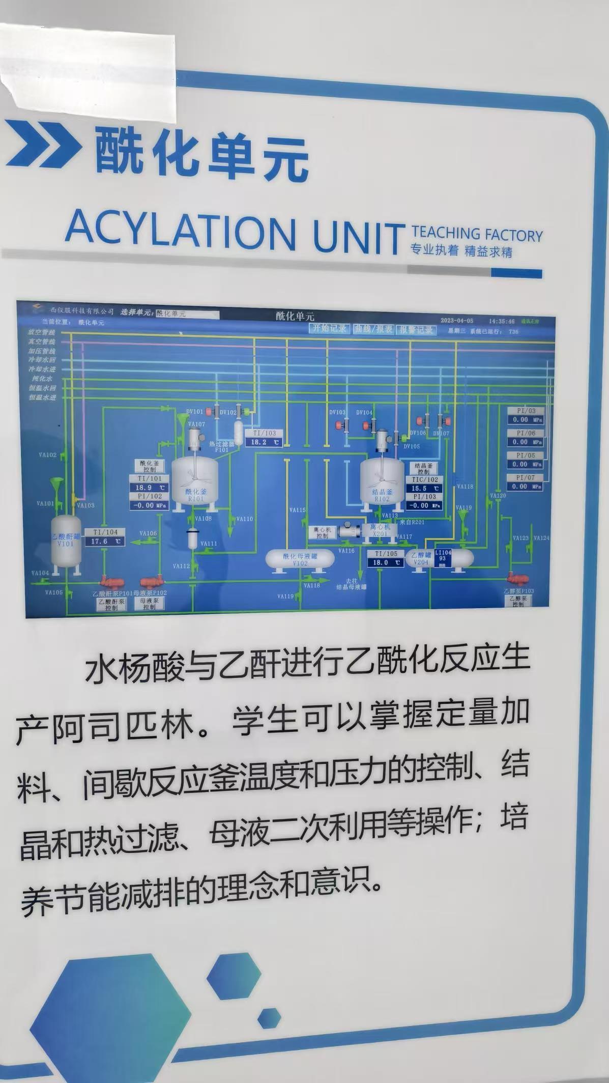 水杨酸与乙酐进行乙酰化反应生产阿司匹林。学生可以掌握定量加料、间歇反应釜温度和压力的控制、结晶和热过滤、母液二次利用等操作;培养节能减排的理念和意识。