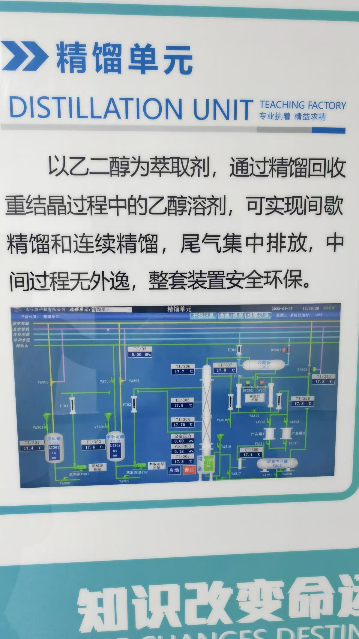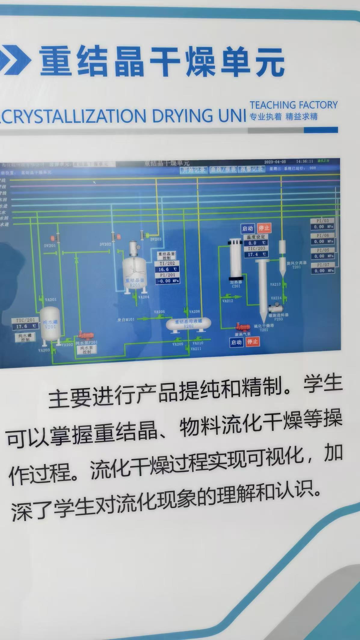 主要进行产品提纯和精制。学生可以掌握重结晶、物料流化于燥等操作过程。流化干燥过程实现可视化,加深了学生对流化现象的理解和认识。