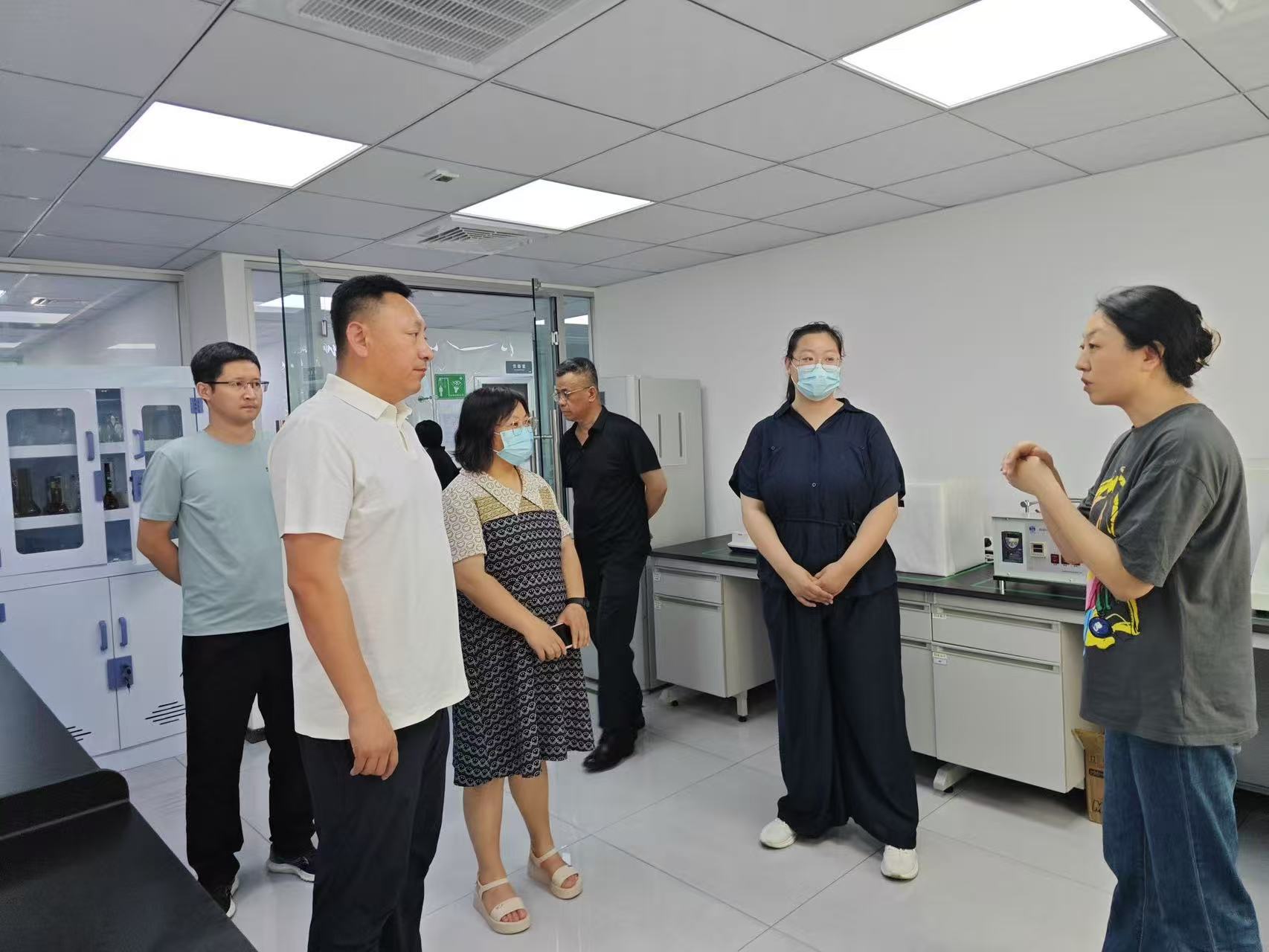 探讨结束后,我校老师在公司工作人员陪同下,老师们参观了理化检测实验室、微生物实验室以及毒理实验室。先进的检测设备、严谨的实验流程给老师们留下了深刻印象,老师们还就实验室建设、检测技术应用等问题与公司技术人员进行了深入交流。