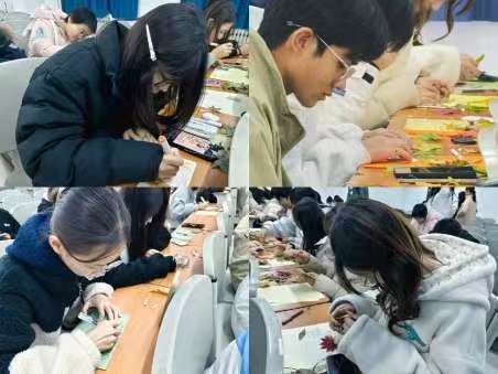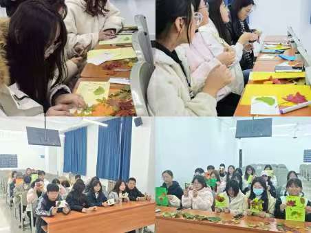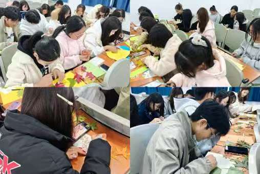 活动现场,大家依次就座,专注于指尖的艺术创作。彩笔点染出枫叶的火红,金粉勾勒出银杏的轮廓,每个人的巧思都在小小的卡片上绽放。有人细细描摹叶脉的纹路,有人题写温暖的诗句,欢声笑语中,一幅幅秋日画卷徐徐展开。