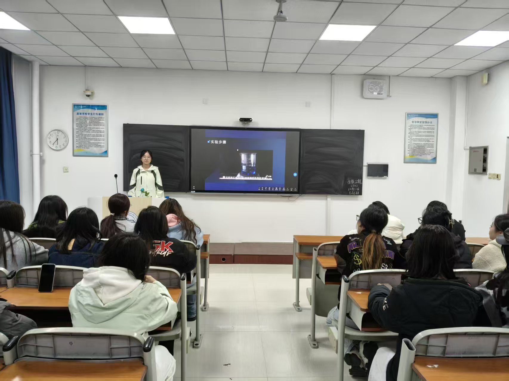11月12日,太阳集团网tyc9728在一教211进行了晶体玫瑰实验——玻璃器皿中,硫酸铬钾的柔紫撞上明矾的澄澈晶体,不仅孕育出永不凋零的玫瑰形态,更成为大学化学课堂叩问物质本质、涵养学科思维的鲜活载体。