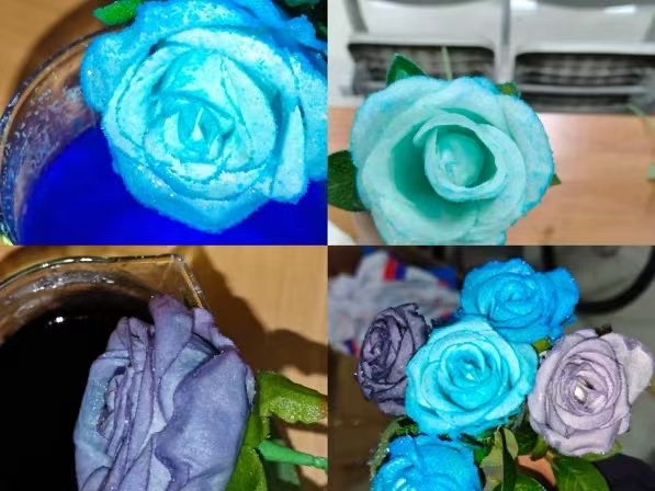 1. 将仿真玫瑰完全浸没在热饱和溶液中,让每一片花瓣都裹满溶液的“期待”;