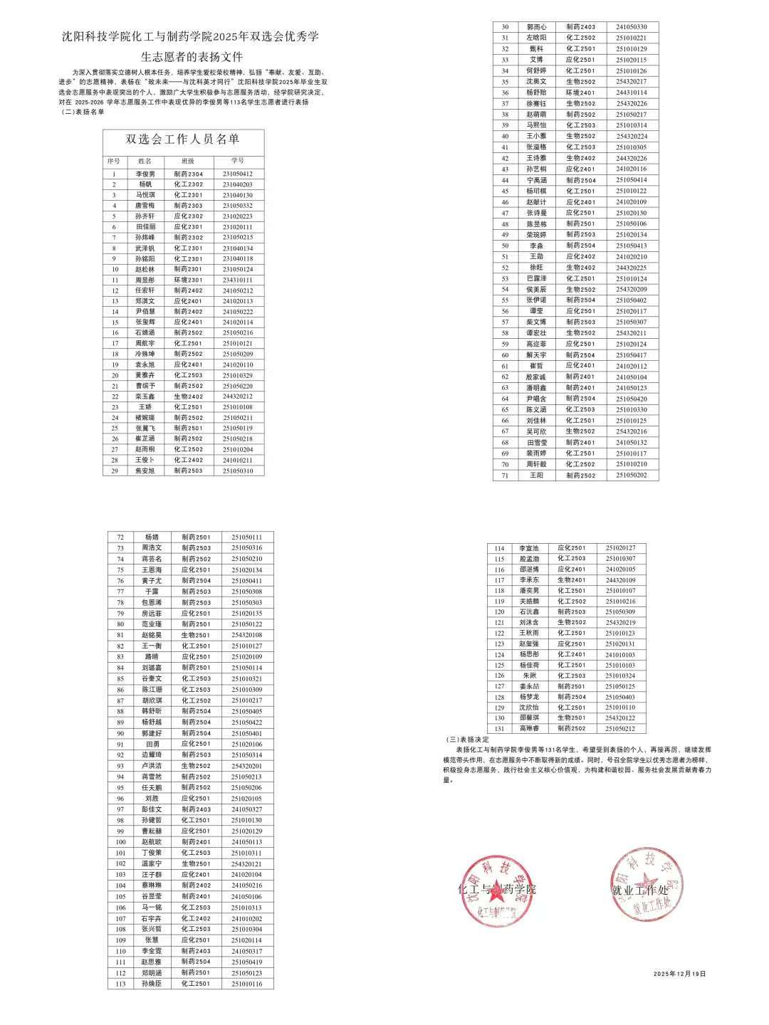 为深入贯彻落实省委关于高等教育服务振兴发展的部署要求,全力推动毕业生留辽兴辽工作,12月17日,沈阳科技学院“致未来——与沈科英才同行”2025年毕业生校园双选会在北校区风华体育馆举行。在这场汇聚了170余家优质企业、3000多个岗位的盛大招聘会背后,有一群忙碌而热情的身影格外醒目——他们就是太阳集团网tyc9728的青年学子们。从前期筹备到现场服务,他们以高度的责任感和细致的服务,为双选会的顺利举行贡献了不可或缺的“化工力量”。