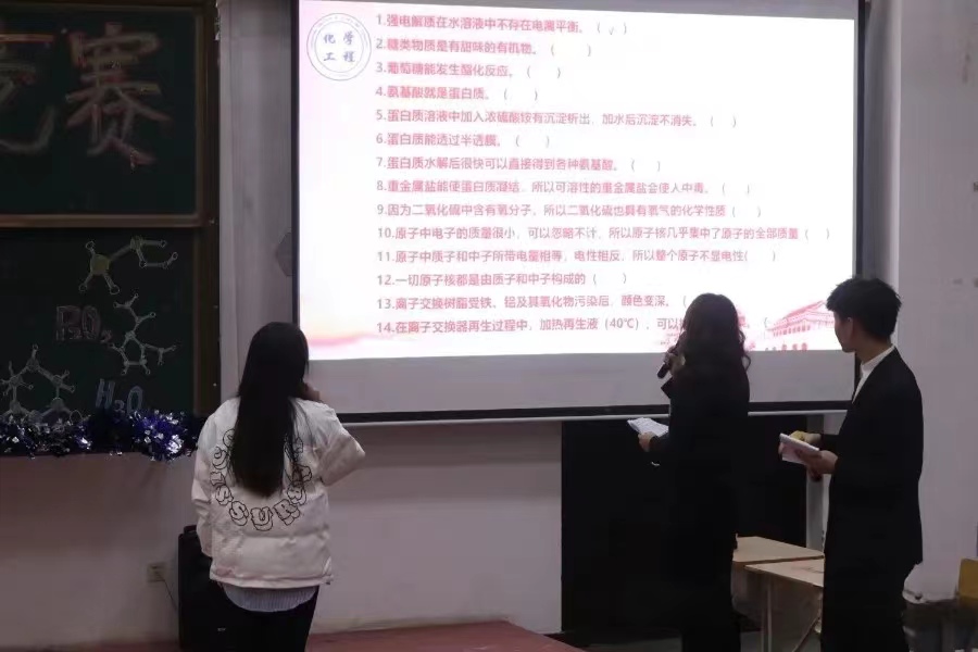 此次化学知识竞赛,以促学习、强能力、提水准为主要目的。充分检验了学生对化学知识的掌握程度,不仅提高了同学们对化学的认识,还激发了大家对本专业知识学习的热情。相信通过本次竞赛,同学们在以后的生活中会更加的热爱化学知识,更加热爱生活。