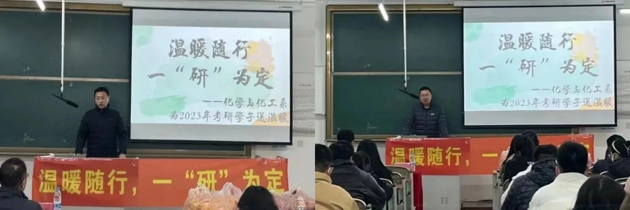 在2022届考研倒计时的最后阶段,为帮助我系考研学子加油打气,我系举办了“温暖随行,一‘研’为定”主题考研送温暖活动。此次活动体现了化学与化工系对考研学子的关心和重视。祝愿所有考研学子不负韶华,金榜题名!