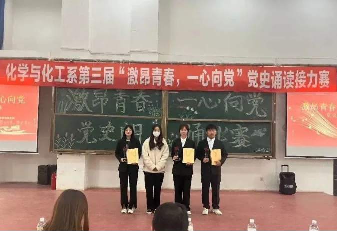 “永远跟党走,奋进新时代”。一百年来,无数仁人志士前仆后继,不怕牺牲,艰苦奋斗,为中国人民谋幸福,为中华民族谋复兴。百年征程波澜壮阔,百年初心历久弥坚。诵读国学经典,品味华夏文明;展示自我风采,弘扬民族气概;化学与化工系分团委学生会组织部于2023年11月15日组织举办了第三届“激昂青春,一心向党”党史朗诵大赛。