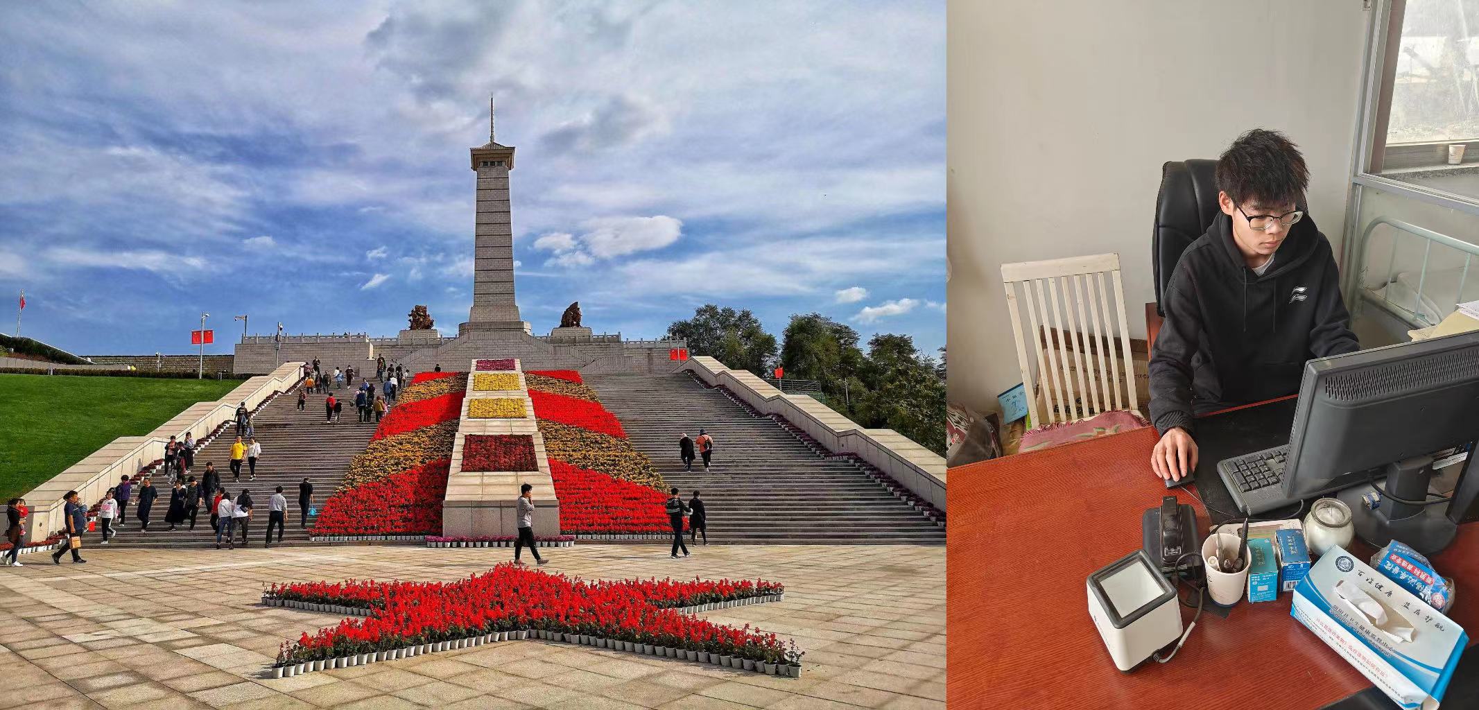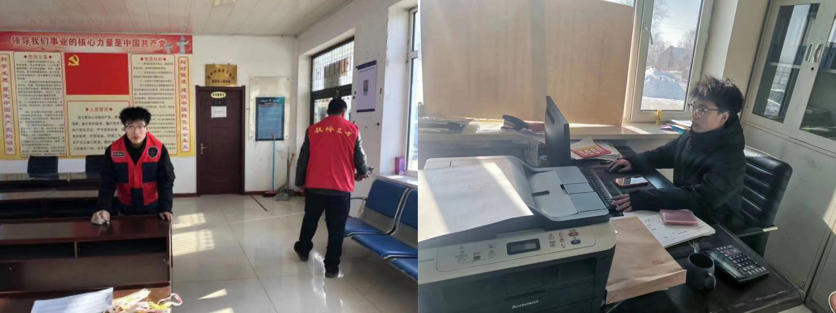 高郡伟同学在参加返家乡的活动中,被分配到乡政府里的工作,平时帮助相关政府人员整理资料,核对报表等工作,同时还参加了下客运站内为各位旅客提供指路,倒热水等志愿者服务,并上街进行青春自护教育宣传活动。