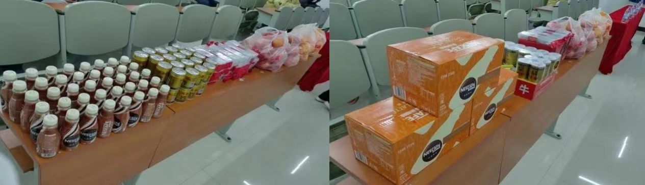 化学与化工系为考研学子精心准备了考研慰问品。其中有苹果、橙子等水果和雀巢咖啡等饮品及文具套装表达着化学与化工系对考研同学最真诚的祝愿。祝愿同学们“苹”安上岸、马到“橙”功,祝愿每一位辛勤备考的化工系考研学子都能旗开得胜。