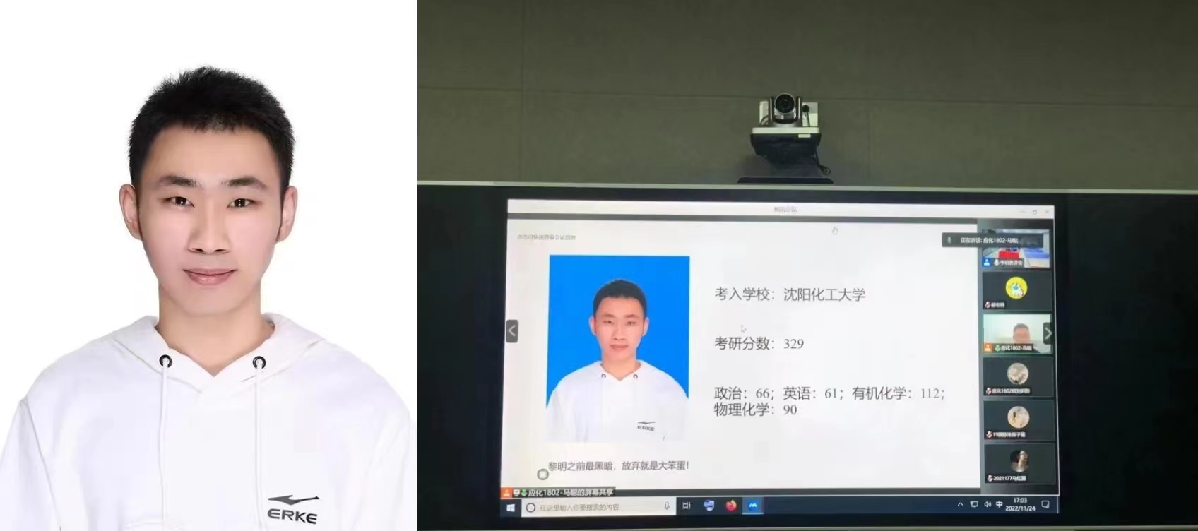 刘枳彤,就读于沈阳化工大学化学。