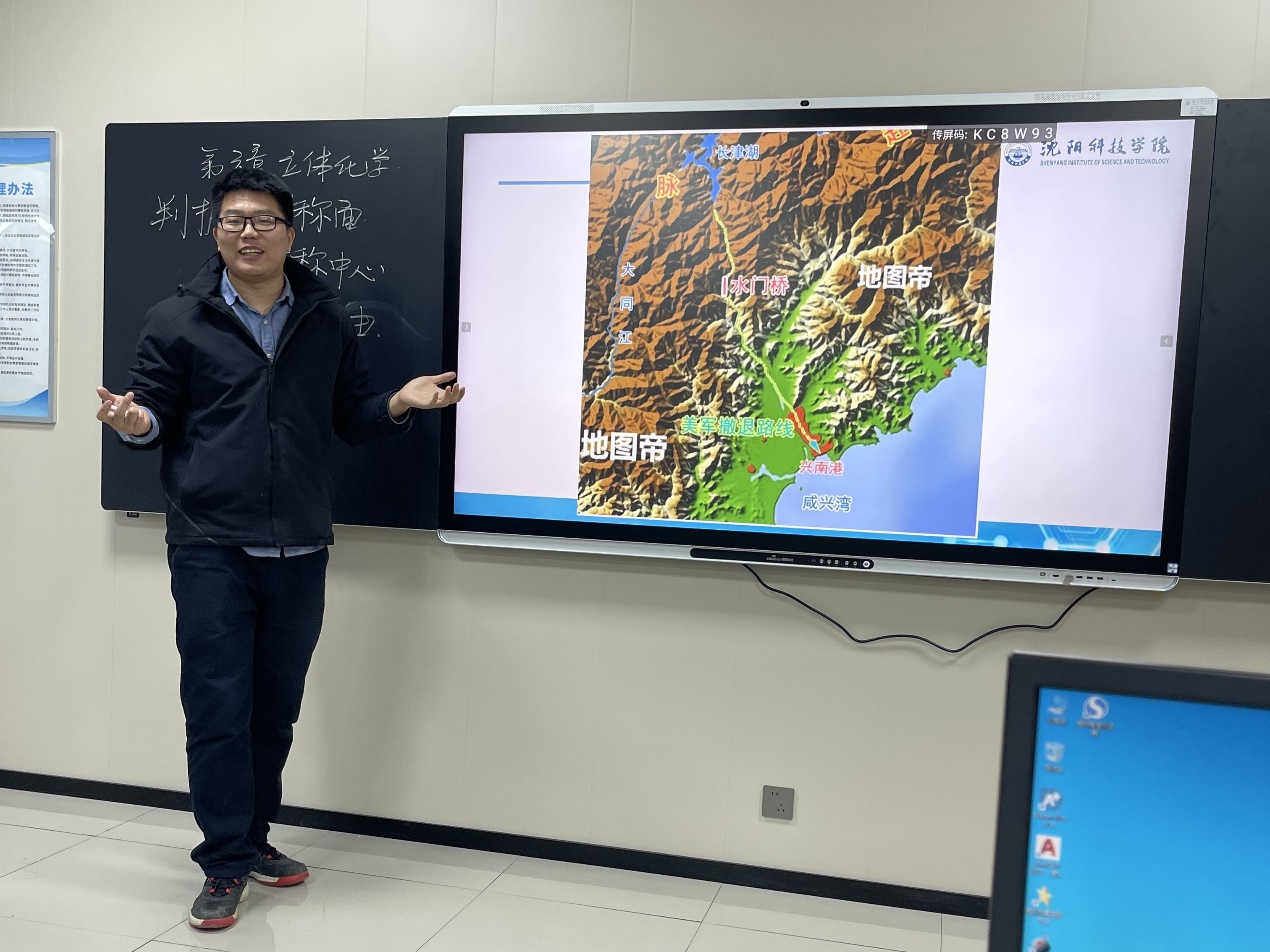 此次活动中,何鑫老师在讲授《有机化学》第六章立体化学时,以抗美援朝志愿军战士在长津湖和水门桥的作战地图为例,既解释了手性分子的特性,又引入了志愿军战士不怕牺牲、保家卫国的伟大抗美援朝精神,语言精练,情绪激昂,讲解透彻,很好的融入了抗美援朝课程思政元素,收到了很好的教学效果。