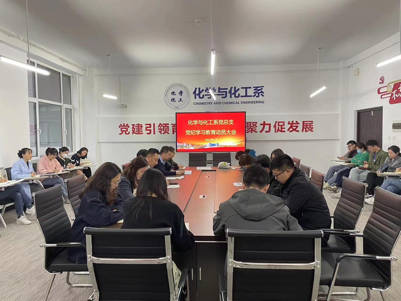 为认真贯彻落实校党委关于开展党纪学习教育相关精神,4月17日,化学与化工系党总支召开全体教工党员会议,部署推动全系党纪学习教育工作。系党总支书记都颖主持会议并作动员讲话,常舒扬领学并讲解《中共沈阳科技学院委员会关于开展党纪学习教育的实施方案》。