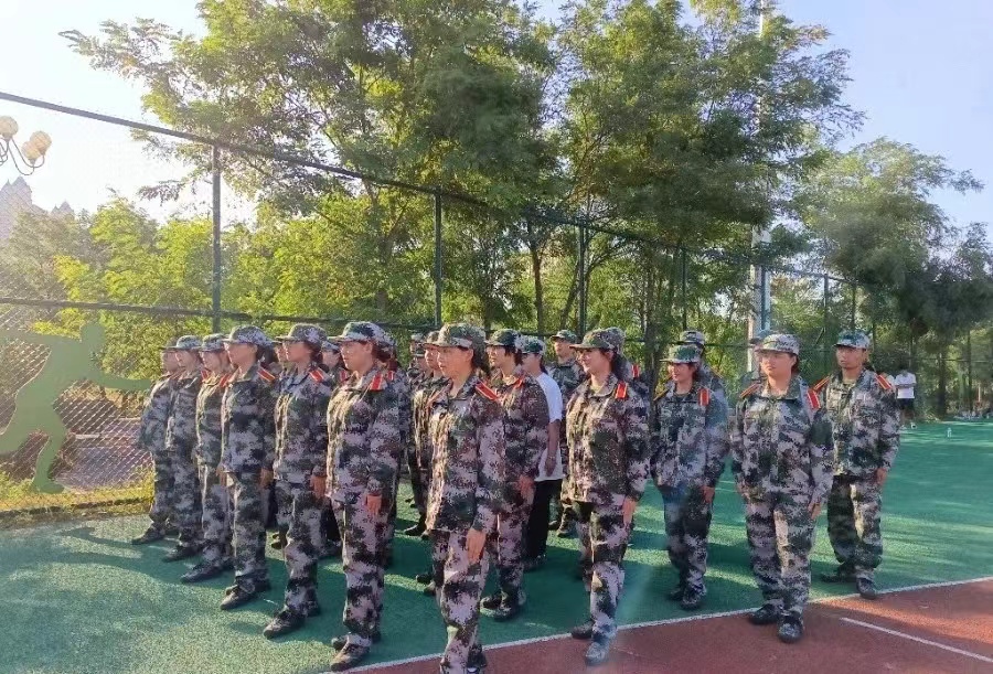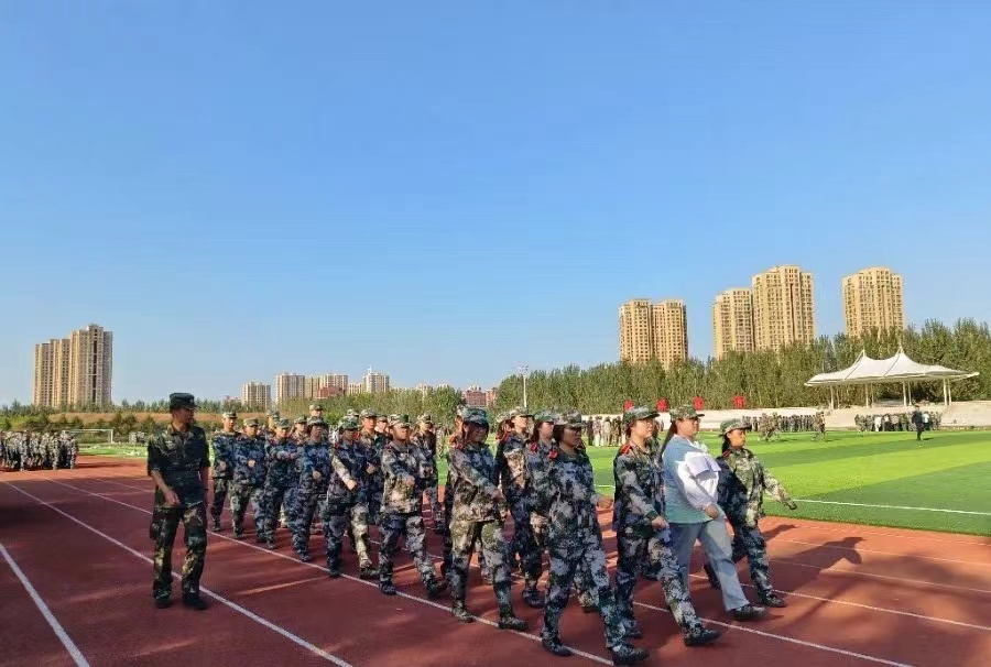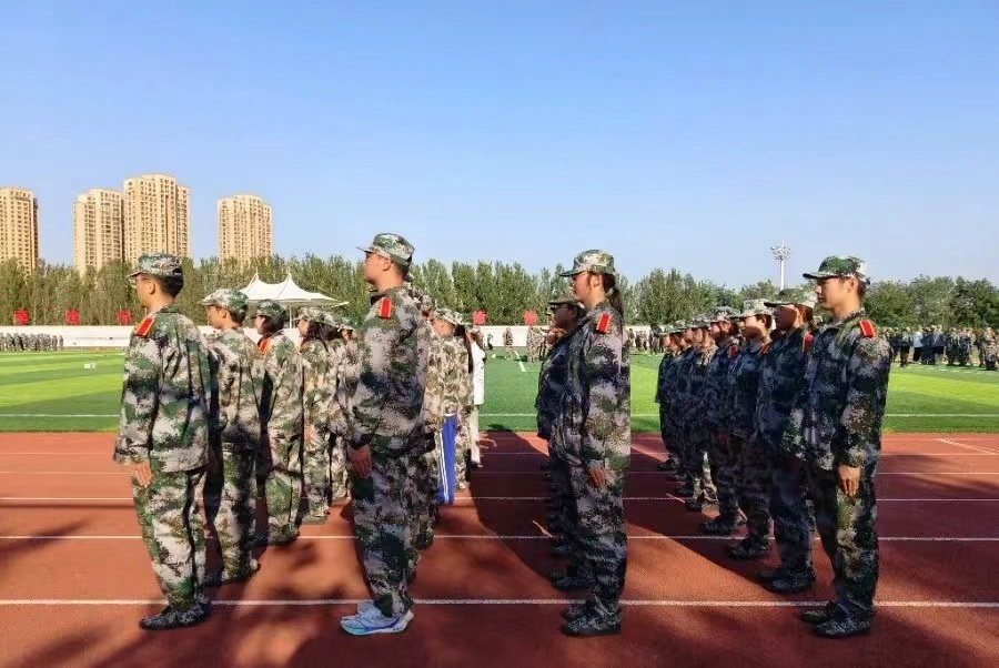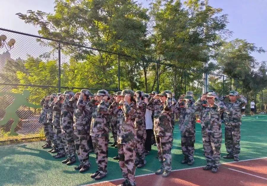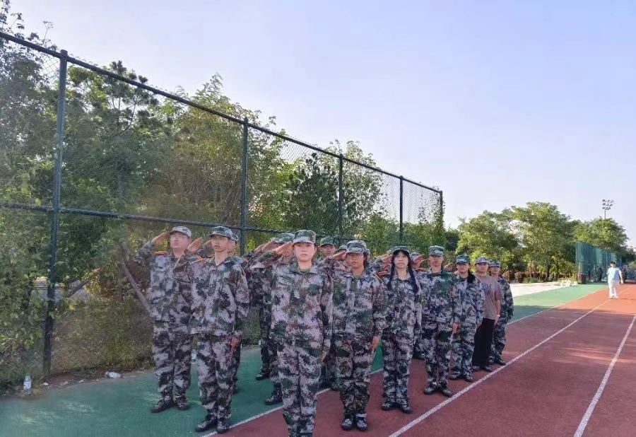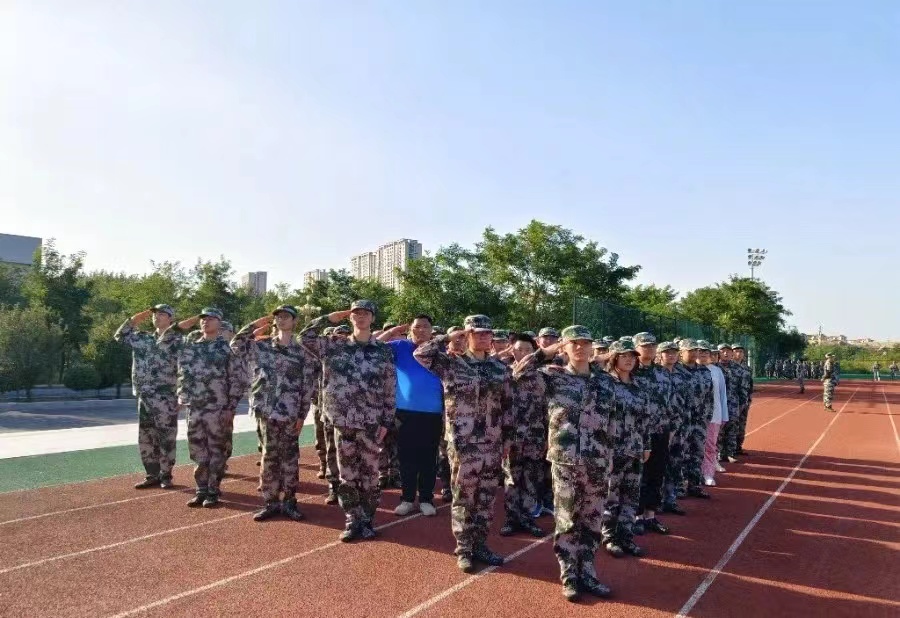 一遍遍练习着敬礼的动作。他们站得笔直,双手紧贴裤缝,眼神中透露出对这项仪式的尊重与庄重。随着教官的一声令下,学生们迅速抬起右手,五指并拢,中指微接帽檐右角前约2厘米处,掌心向下,向外张约20度。每一个动作都力求精准到位,每一次敬礼都饱含着对祖国的热爱与忠诚。军训是校园生活的序章,是心灵的淬炼与洗礼,是自我的挑战与超越。少年热血肆意生长,属化工学子的青春故事还在继续,迈向荣耀征程的精神仍在激励着他们不断前行。