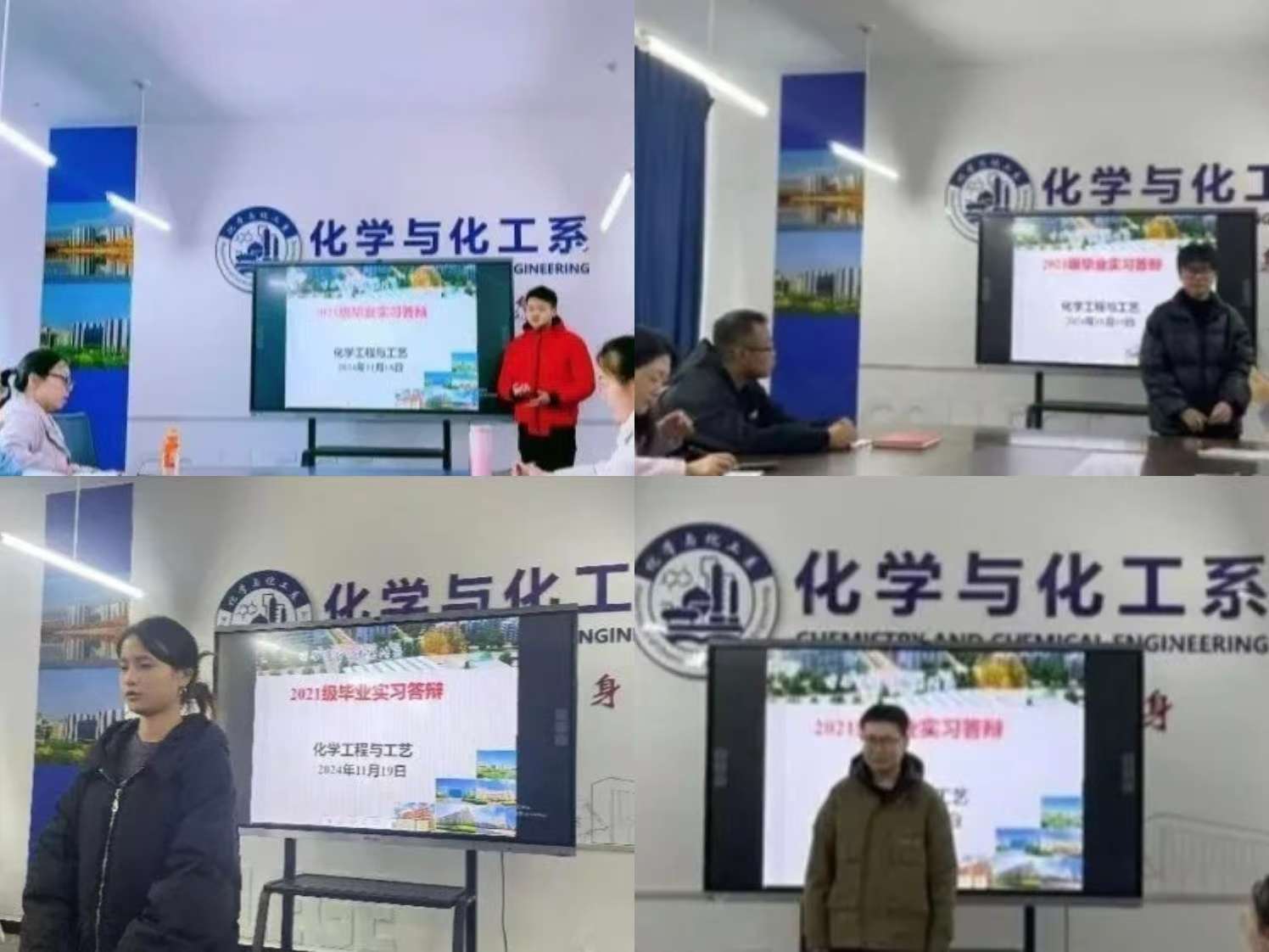 2024年11月18日至20日,化学工程与工艺教研室成功进行2021届化学工程与工艺专业毕业实习答辩。此次答辩旨在检验学生实习期间的学习成果,为同学们提供一个展示自我、交流学习的平台。