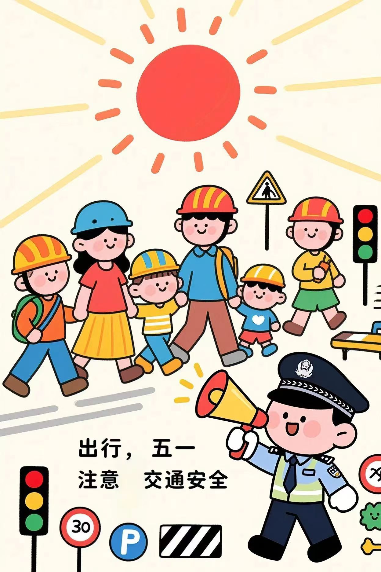 1. 交通规范:步行/骑车不看手机,过马路走斑马线,拒乘“黑车”,乘车系好安全带。