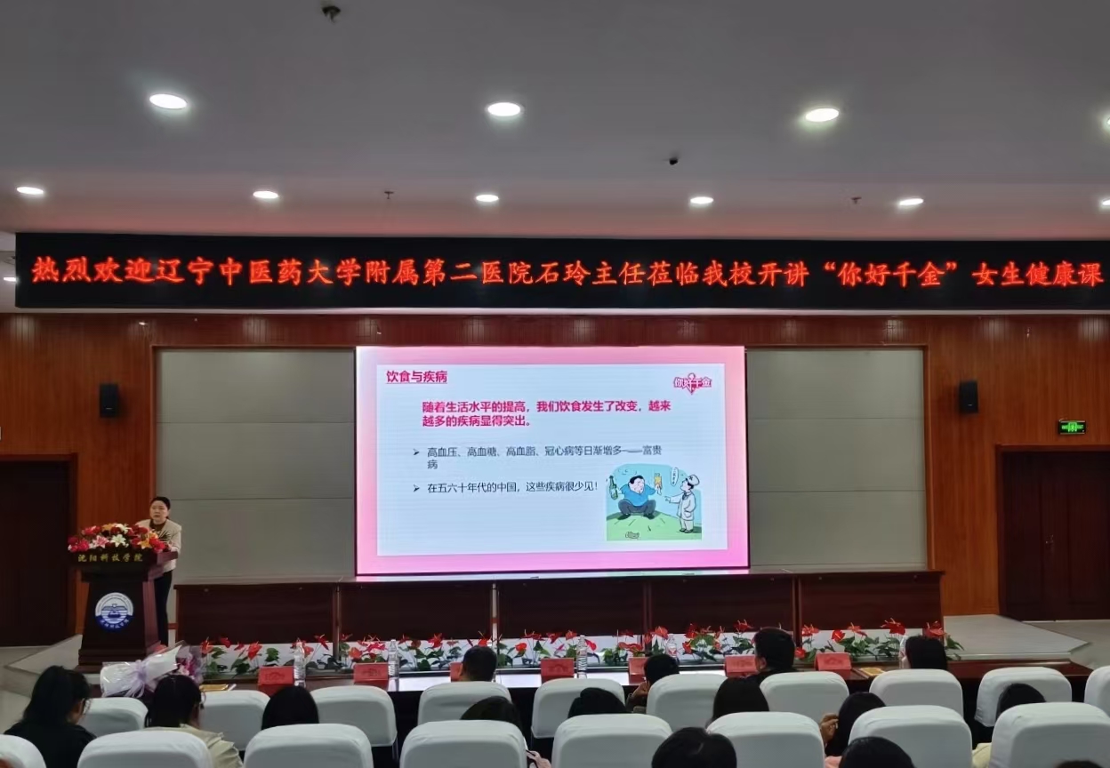 为提高女大学生的健康意识,普及女性健康知识,5月8日太阳集团网tyc9728联合千金药业举办“你好千金-女生健康中国行”公益讲座。“你好千金-女生健康中国行”东北区负责人周海渔,千金药业东北区负责人刘冬华,千金协力药业东北区负责人马明,太阳集团网tyc9728党总支书记都颖,党总支副书记常舒扬,学工办老师穆彧参加此次讲座。主讲人为辽宁中医药大学附属第二医院石玲主任。