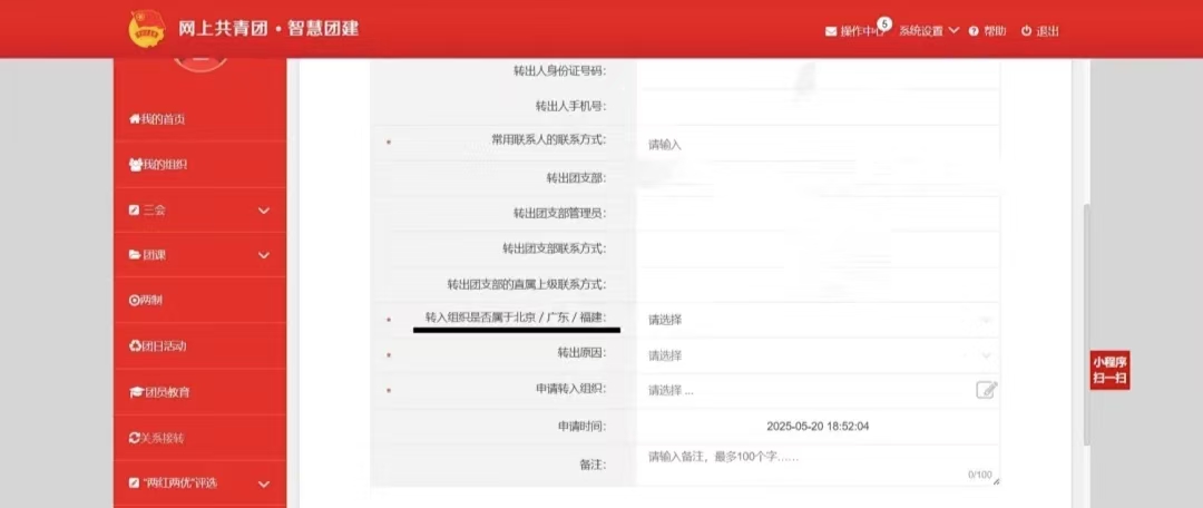 (3)毕业后参军入伍的学生团员:选择“特殊单位团组织”后,由省级团组织负责审核,毕业后到涉密单位工作的学生团员的转接参照此类型处理。