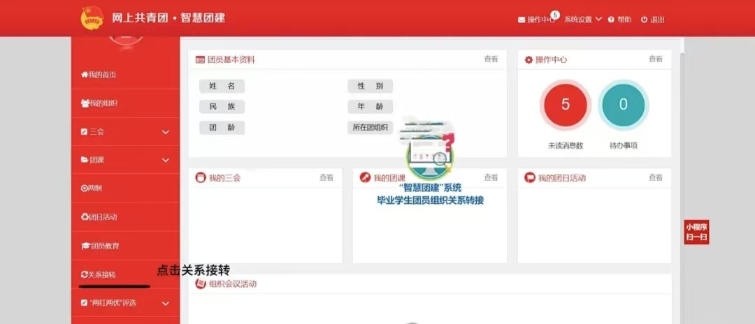 进入智慧团建首页后,点击“关系转接”。