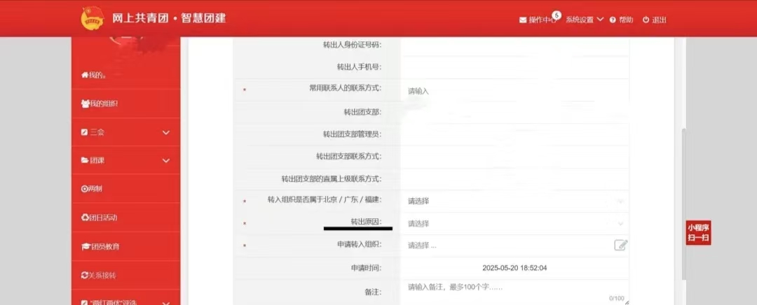 融合设置理论讲授、实践解读、案例教学三个板块,着重从问题导向、理论贡献、实践价值、世界意义等维度加强对党的创新理论的深度讲解。2025届毕业生在进行团组织关系转接过程中,需个人或所在团组织登录“智慧团建”系统,即可完成转出工作,详见下图。