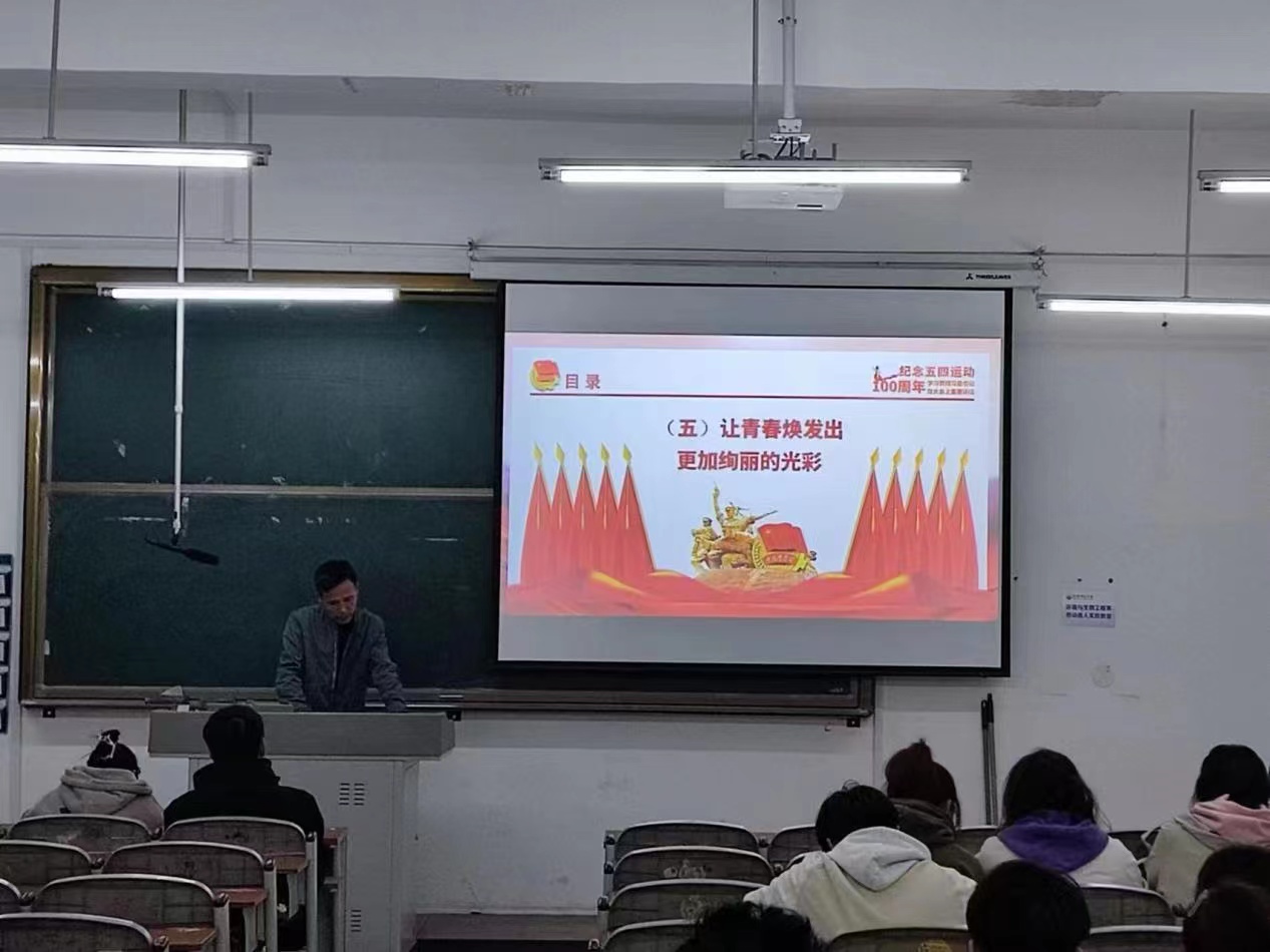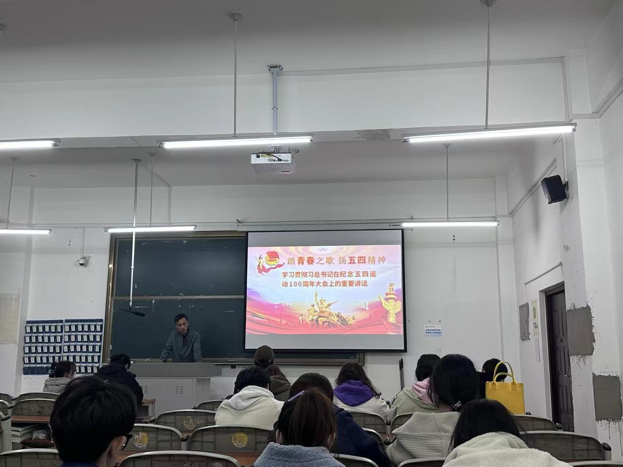 今年是五四运动104周年为了全面提高学生对党的了解,增强学生热爱党的情怀,坚定同学永远跟党走的理念,明确作为当代的一名共青团员及大学生的职责和使命。环境与生物工程系于2023年4月27日在一教206教室展开积极分子理论学习会议,由环境与生物工程系党支部书记赵老师为大家讲述了“学习贯彻习近平总书记在纪念五四运动100周年大会上的重要讲话”积极分子培训课。