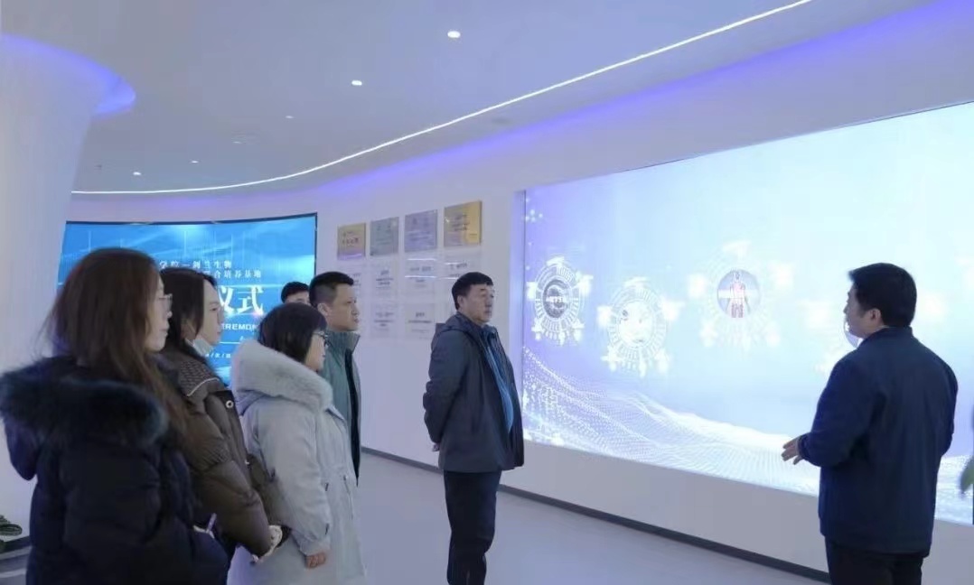 活动伊始,张秀峰总经理对沈阳科技学院校领导一行的到来表示热烈欢迎,为了让沈阳科技学院的各位领导与教师进一步了解剑兰生物,张秀峰总经理与沈阳科技学院校领导一行共同参观了剑兰生命数字展示中心、生物实验室、模式动物平台和办公空间等场所。