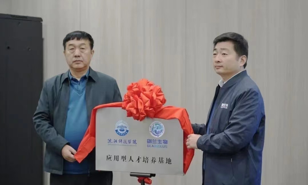 随后张秀峰总经理与王鸿鹏副校长签订校企合作协议,并共同为沈阳科技学院—剑兰生物人才联合培养基地进行揭牌。