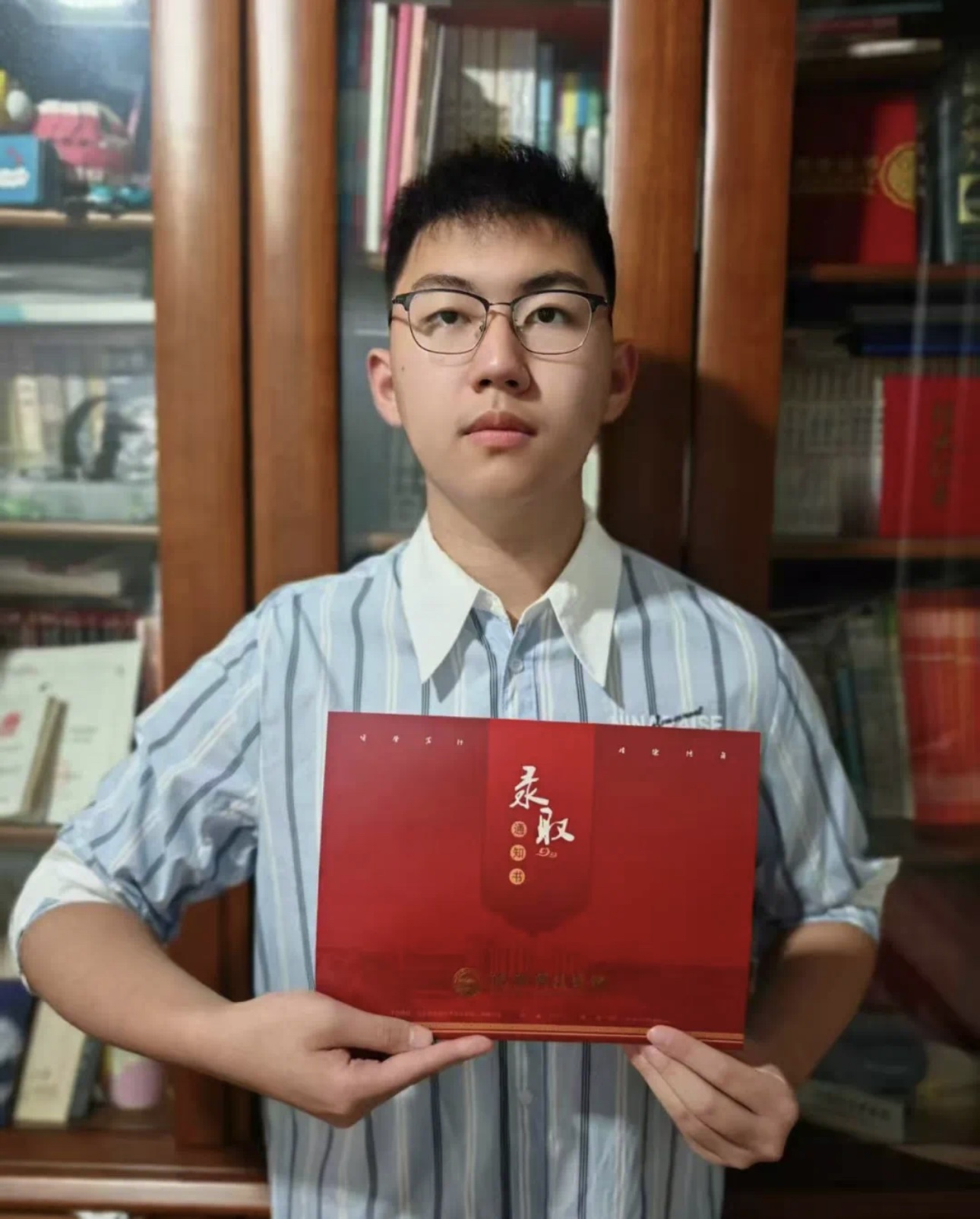 通知书在手,心跳随信封烫金跃动 昨日汗水凝成今日船票,终于驶向梦想启航的港口 前方长路灿烂,少年步履不停,定不负热爱与山海。
