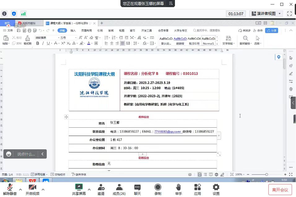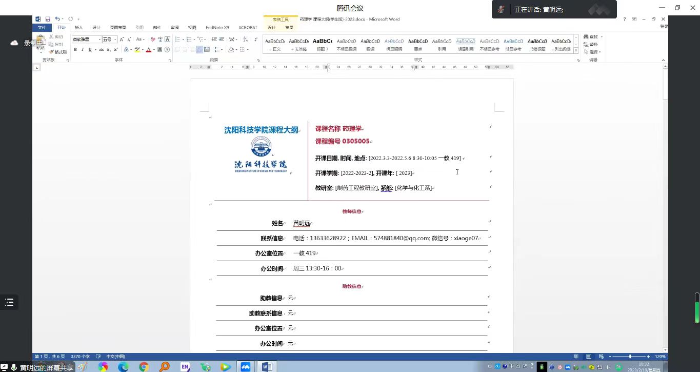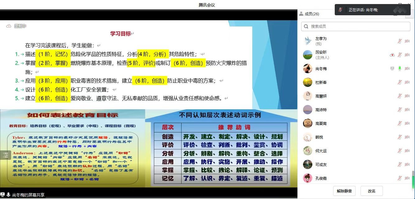 2023年2月10日,化学与化工系举办以“课程大纲(学生版)”为主题的研讨会。课程教学大纲是教师指导课程教学的纲领性文件,规定了课程性质、教学目的、教学内容、学时安排、教材及参考书等,是培养方案的具体体现和落实,是组织教学、指定授课计划、编写教材及教学质量检查的主要依据,也是课程建设和课程评估的重要内容。课程大纲(学生版)是在课程教学大纲的基础上编制得到。其目的是引导学生更好的学习课程。学生在开课之前即可了解课程性质、学习目的、学习内容等,以及学完后将达到的预期水平。有助于学生为职业目标规划合理的学习计划,并为未来自我提升性学习提供参考。