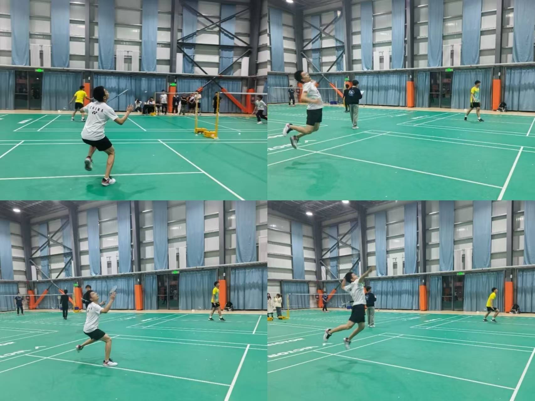 选手们的目光聚焦在羽毛球上,全身心沉浸在比赛中,他们追求速度、灵活性和精准度,力争发挥自己的最佳水平。观众们席地而坐,为运动员们鼓劲加油,他们欣赏比赛中的技术细节,感受到运动带来的快乐和激情。比赛中的每一个瞬间都充满了紧张和战斗的气氛,每一个得分都是选手们拼搏的结果,也是对付出努力的回报。